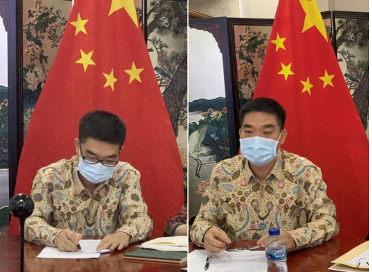 顾景奇总领事简要回顾了建党百年之际中国取得的成就、中印尼关系的发展情况,介绍了我馆2021年度指导领区内各企业和项目在疫情防控、安全生产、合规经营、员工合法权益保障、基层组织建设等方面主要工作。